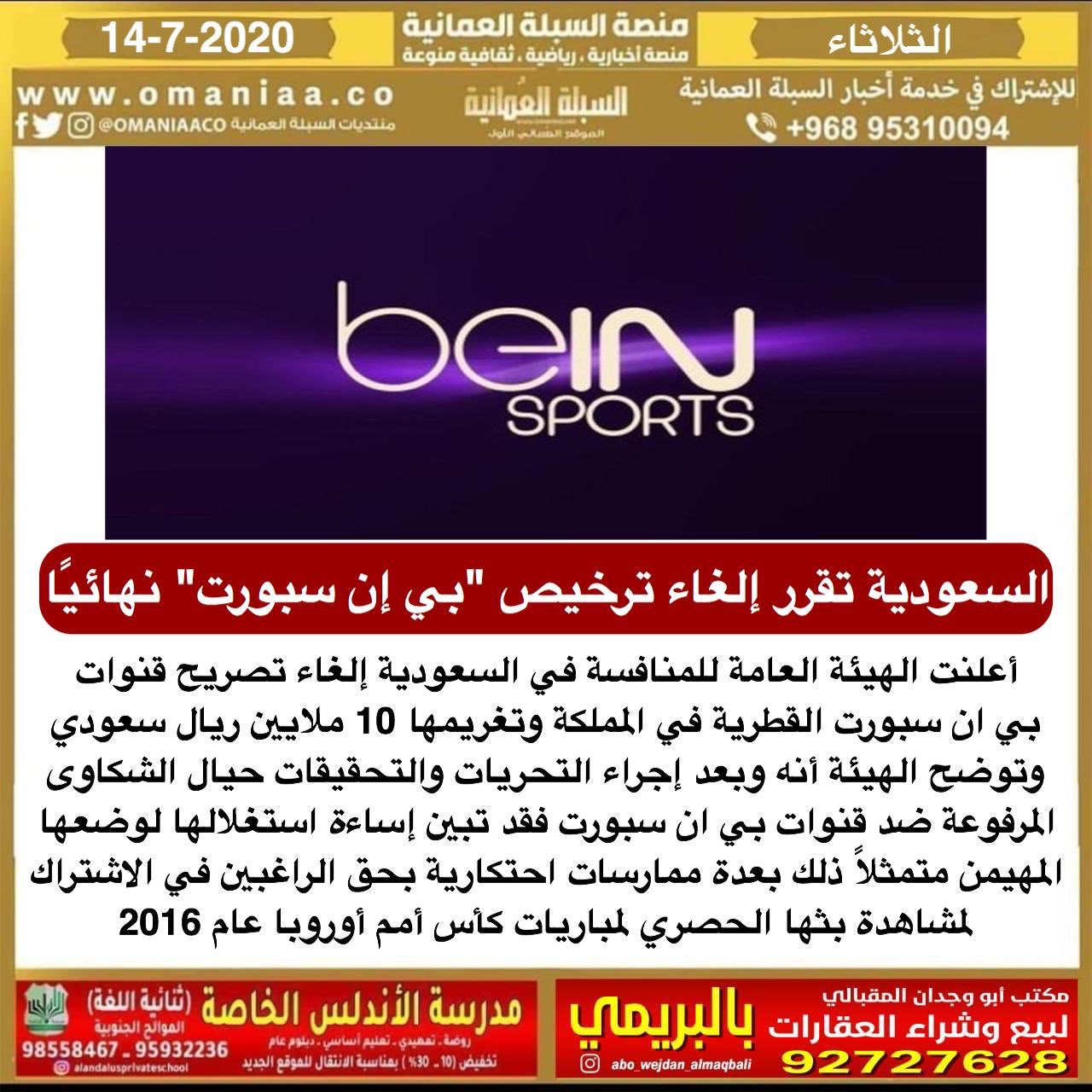 رسميا السعودية تلغي ترخيص قنوات بي ان سبورت وتغرمها 10