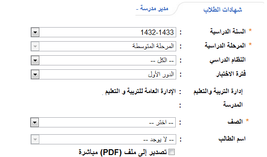 نظام نور للاستعلام عن شهادات الطلاب الابتدائي المتوسطة