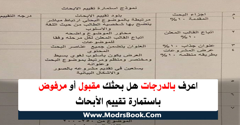 نموذج استمارة تقييم الأبحاث لجميع المراحل ابتدائي واعدادي
